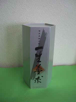 | 鹿児島県奄美大島名産黒糖焼酎のラベルと箱の内側に神野溪雲筆による「一生夢求」の題字 「現役時代は夢を求めて年中無休」 「やがて年中無給になっても夢を追い求める人生に変わりなし」 「そう、いくつになっても年中夢求」 「老いも若きも生きているかぎりは一生夢求」の4節を書く。 黒いしゃれたボトルにはいった黒糖焼酎「一生夢求」は味のみならず入れ物においても夢を感じさせるものとなっている。 アルコール分30% 内容量720ml 製造-沖永良酒造梶@ 鹿児島県大島郡和泊町玉城字花トリ19999-1 販売−東京読売開発 東京都港区芝5-26-16 TEL03-6436-4351 |